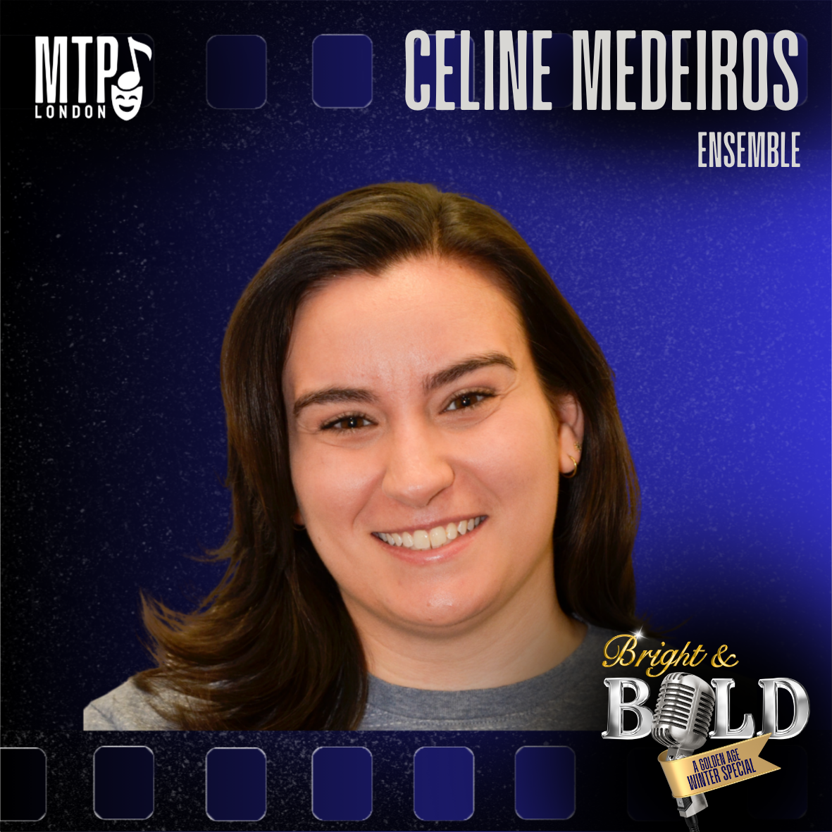 Celine Medeiros past credits for MTP: Aysha (Children of Eden), Set Designer (Blood Brothers). Selected Credits: Molly Jensen in GHOST The Musical (COS), Performer and co-writer of Dated Humour Sketch Show (London Fringe, TBT Collective), Elizabeth Benning in Young Frankenstein: The Musical (MAVIS), June Baker in Welcome to Bon Echo (AlvegoRoot Theatre). All her love to mom and dad, J+M, and forever H.