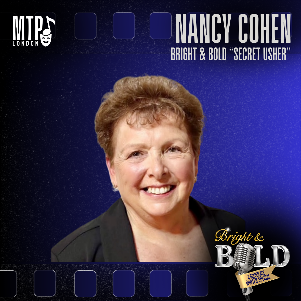 Nancy Cohen discovered her love of drama in high school and has joyfully returned to the stage. In 2025, she was cast in Groovin’ for Good with Silver Spotlight Theatre and appeared in Miracle on 34th Street. Beyond theatre, Nancy has appeared twice on Dragon’s Den, securing a deal—proof she’s as confident on camera as she is on stage. After retiring from a 48-year nursing career, Nancy now invests her time in performing and has been cast in her first film, shooting in 2026.